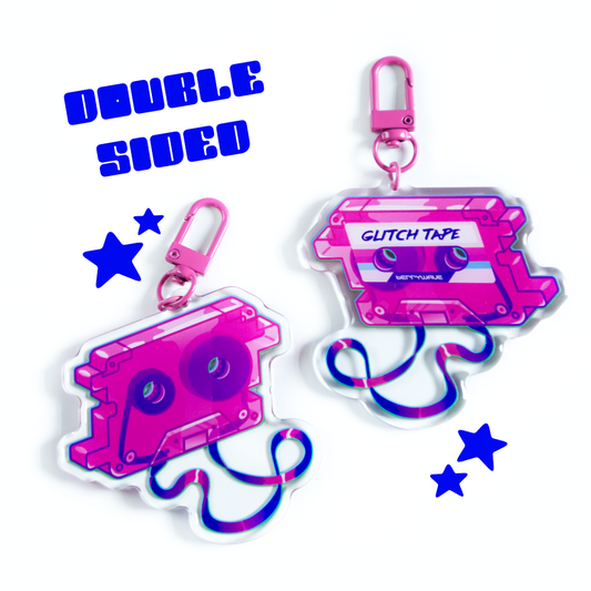 Pink "GlitchTape" Cassette Acrylic Keychain