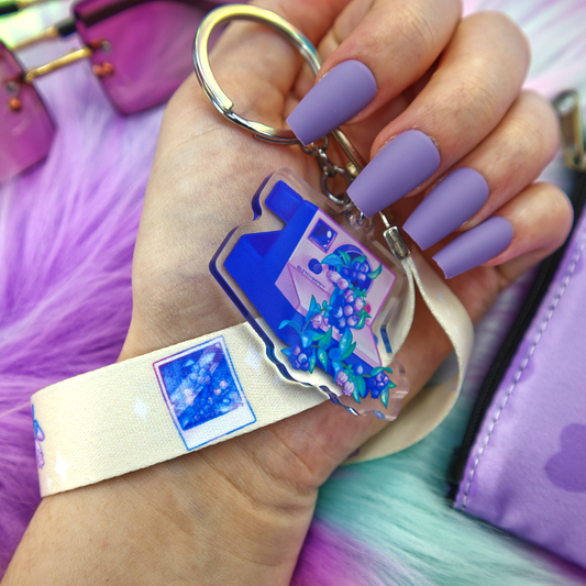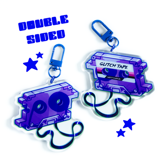 Purple "GlitchTape" Cassette Acrylic Keychain