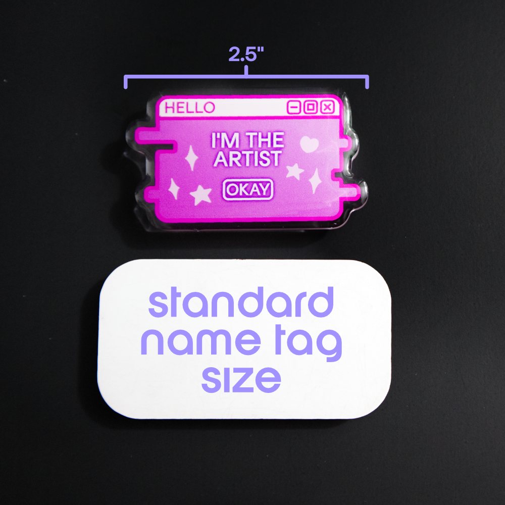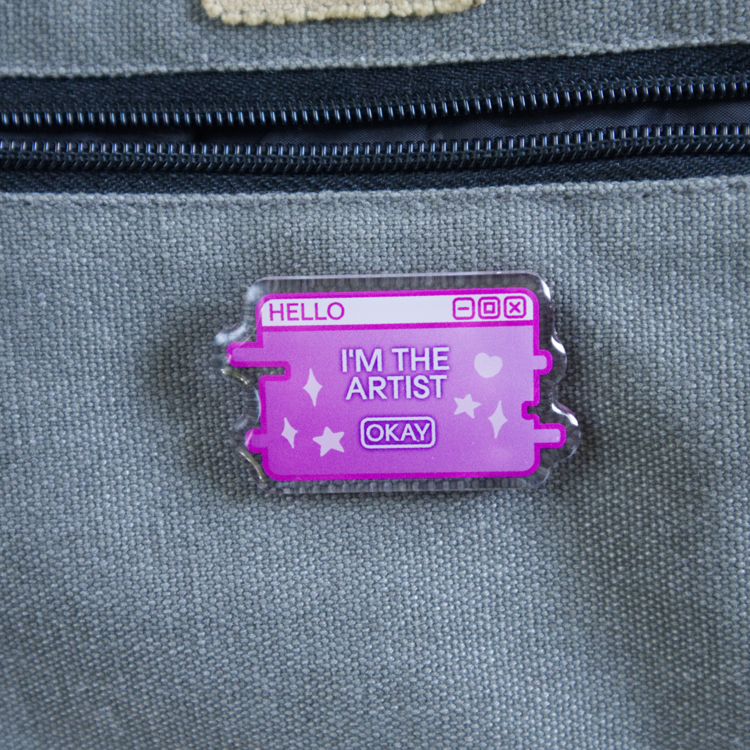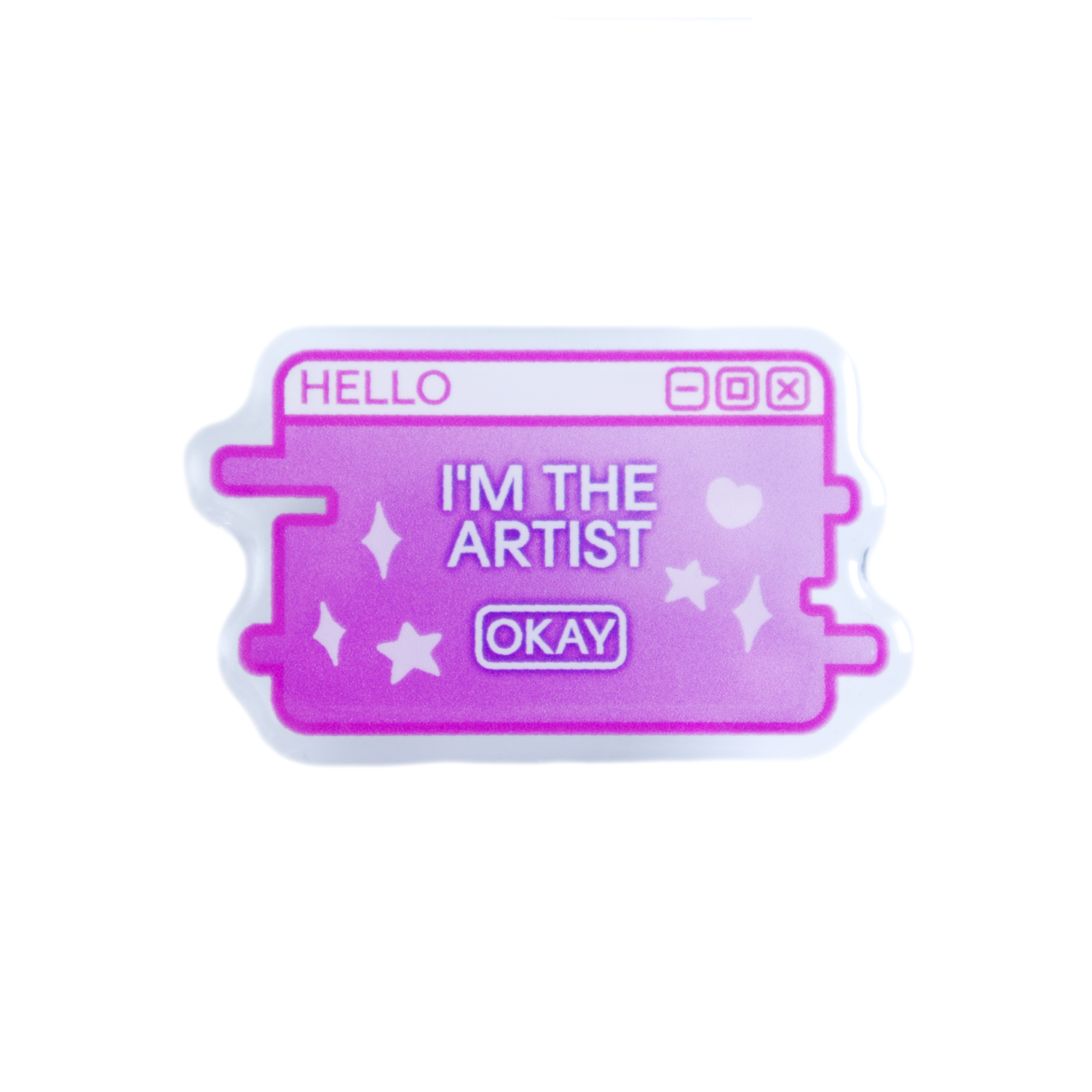 Let your customers know you're the artist behind the table with these cute and glitchy "I'm the Artist" system message pins. With a magnetic backing that won't poke holes in your outfit, cosplay, or whatever you stick it to, these 2.5-inch pins are perfect for vending at expos, conventions, and fairs.
