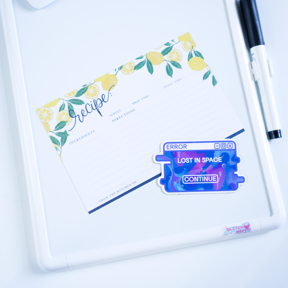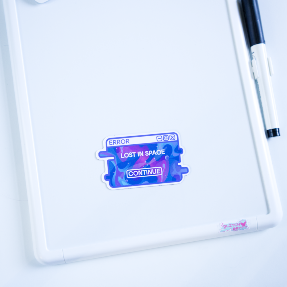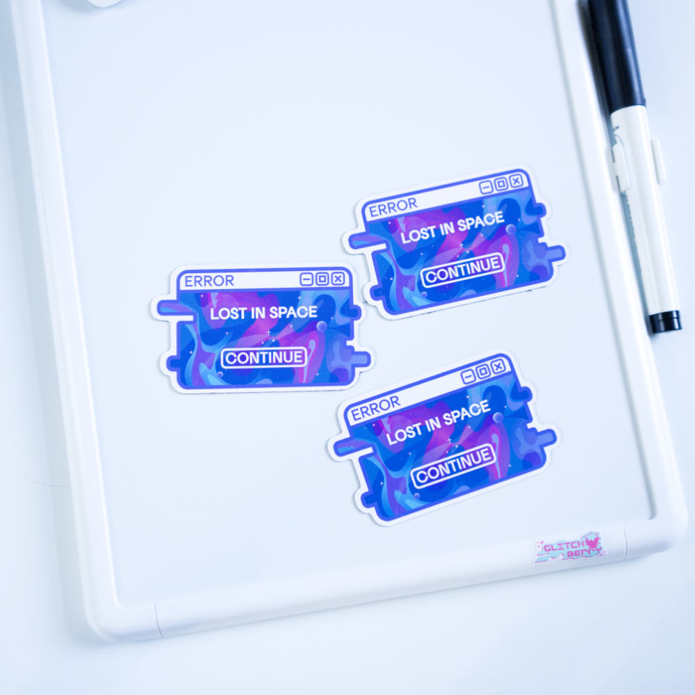 Express your inner thoughts with this glitchy error message magnet. With a colorful space motif, this 3" magnet is perfect for adding a touch of personality to your fridge or dry-erase board.