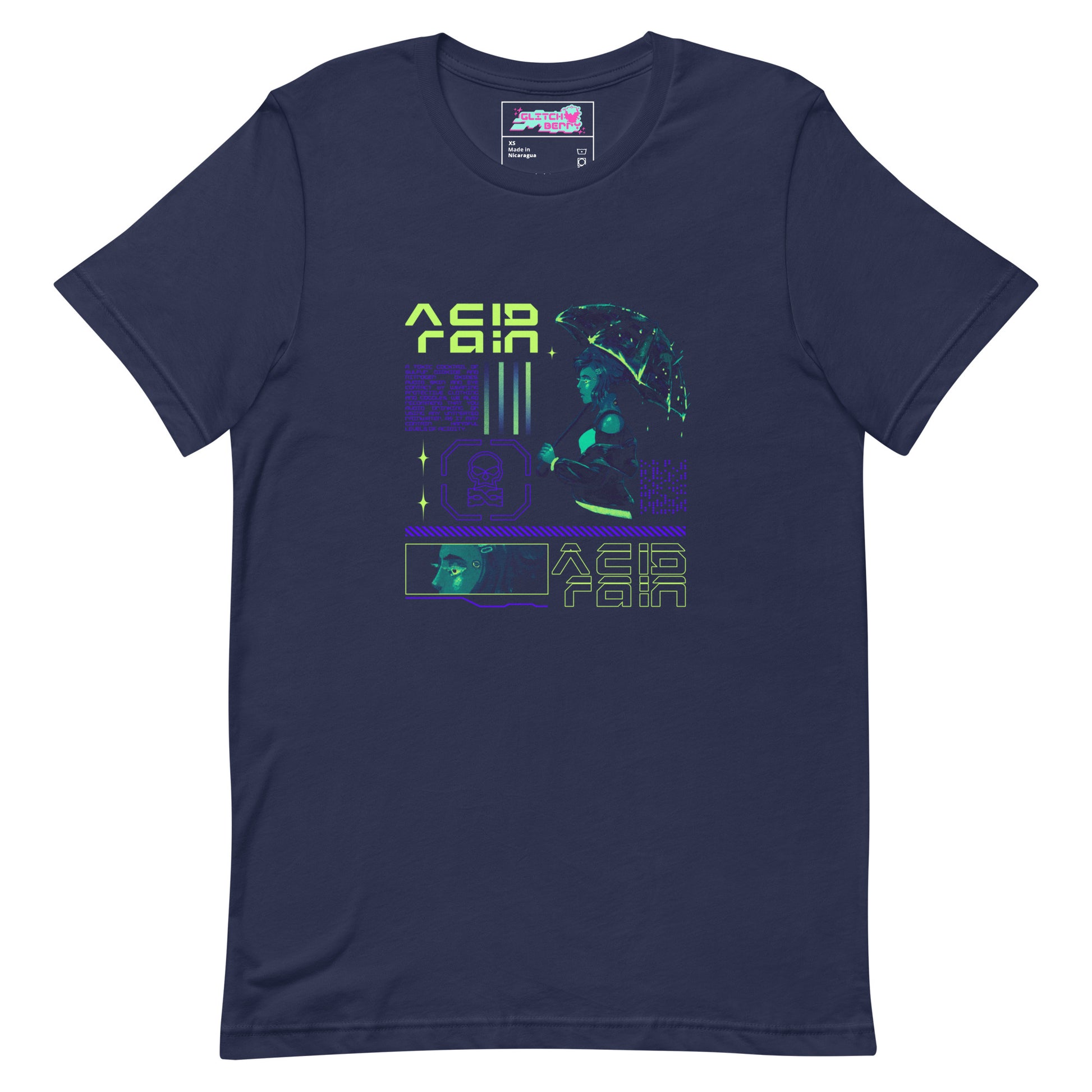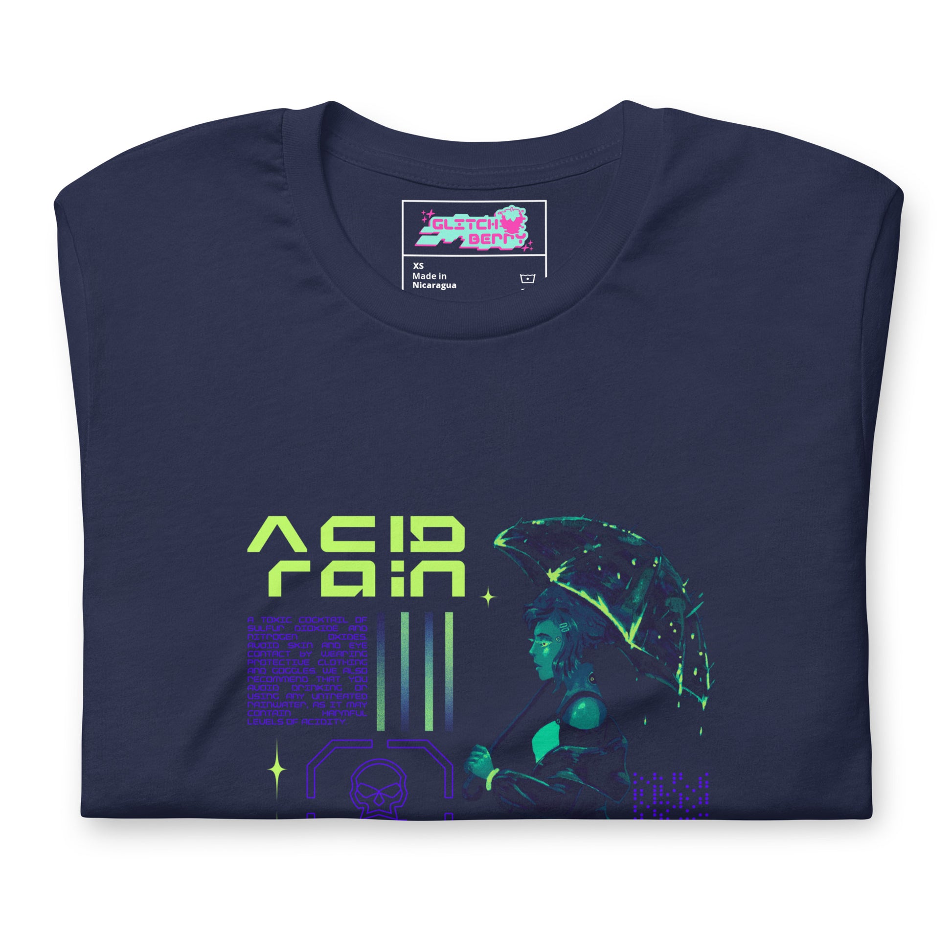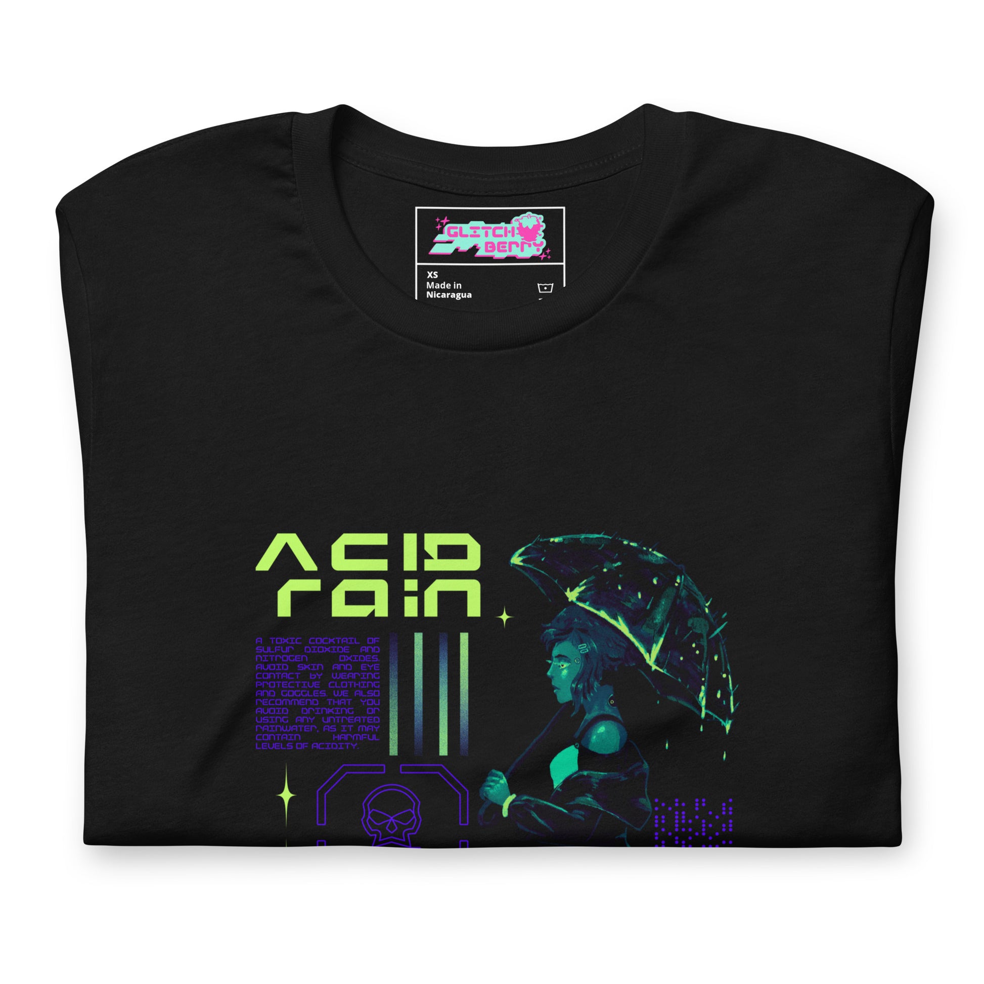 Step into a world where neon-lit streets reflect off rain-soaked pavements with our Acid Rain t-shirt. This unisex short-sleeved shirt features an acid rain streetwear design with ethereal hues and pixelated raindrops. It's made with thick cozy cotton with a high-quality print.  Embrace the clash of technology and urban decay, and let your style reign in the acid rain-soaked streets of the future.