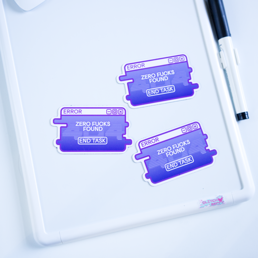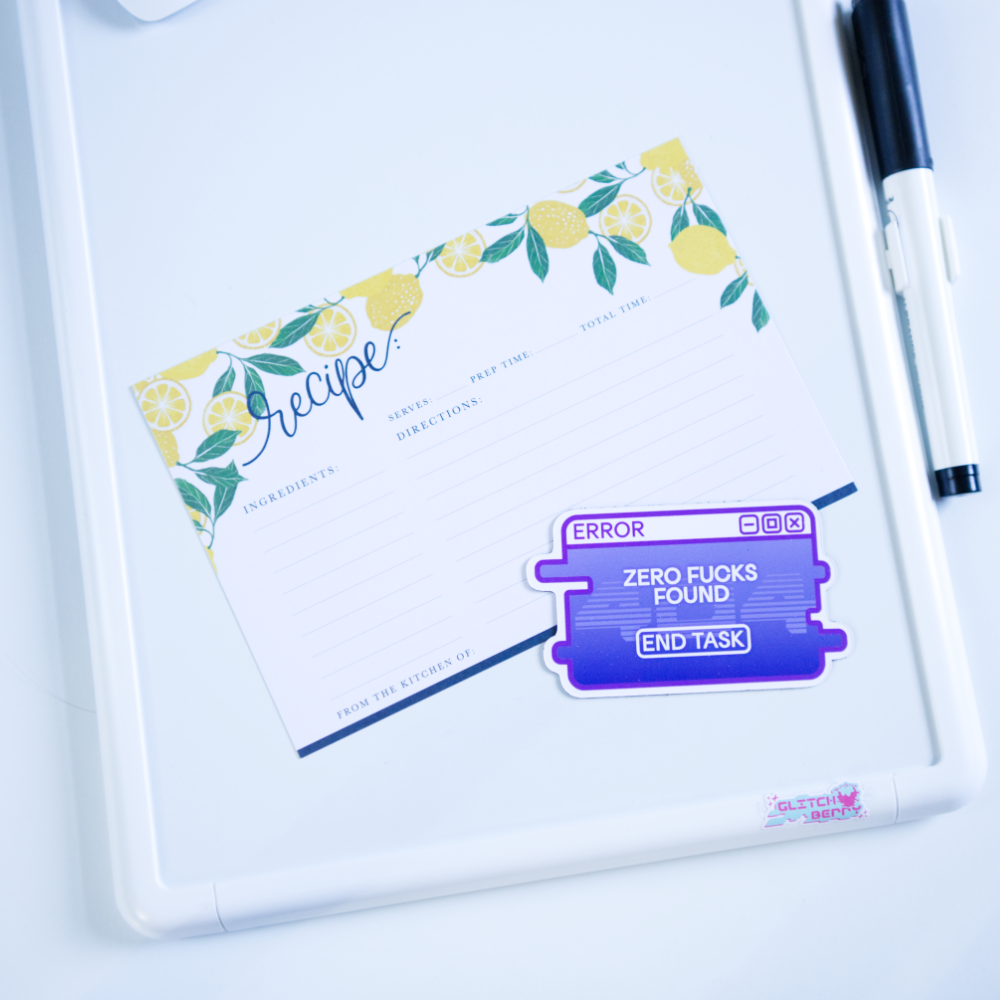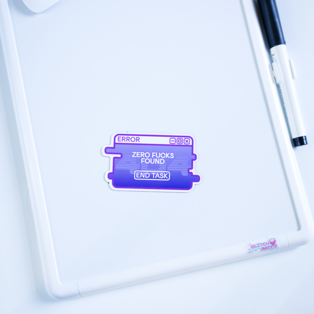 Express your inner thoughts with this glitchy error message magnet. With a blue-screen 404 error background, this 3" magnet is perfect for adding a touch of personality to your fridge or dry-erase board, and conveying just how utterly done you are.